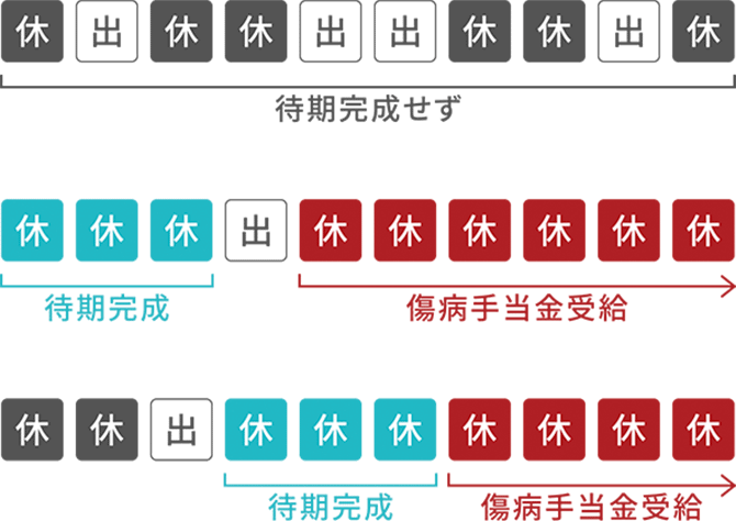 連続して2日間会社を休んだ後、3日目に仕事を行った場合には、「待期3日間」は成立しないので注意が必要です。