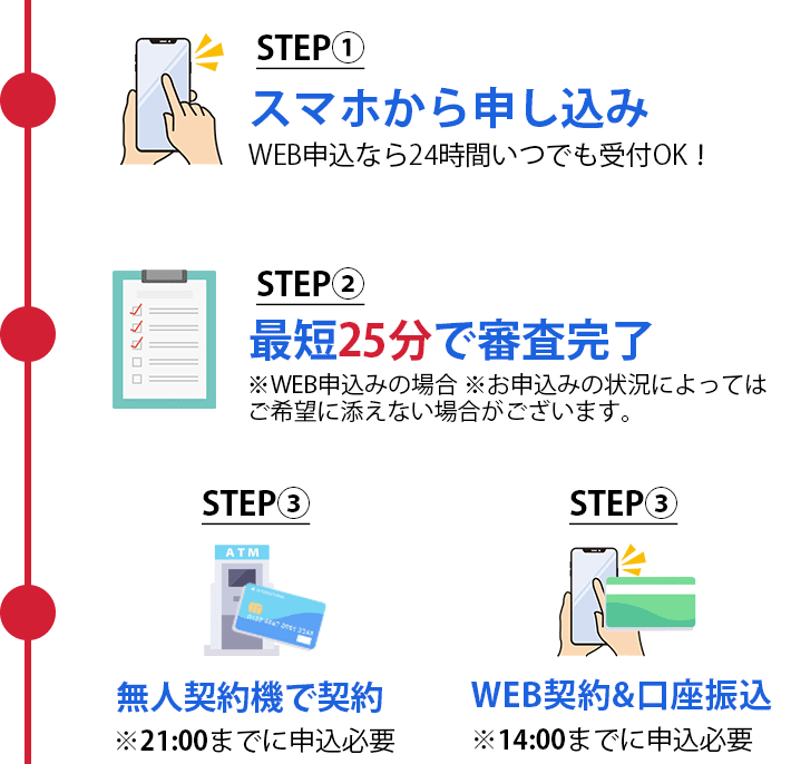 即日で借りる3STEP